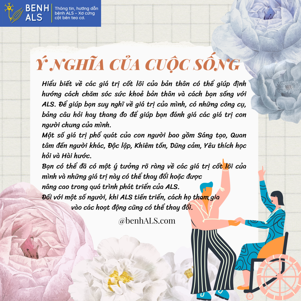 Thảo luận với nhiều những người sống chung với ALS gợi ra một điều: Yếu tố bền vững để sống chung với căn bệnh này là liên tục đổi mới hy vọng và tìm kiếm ý nghĩa mới trong cuộc sống của bạn ở hiện tại.