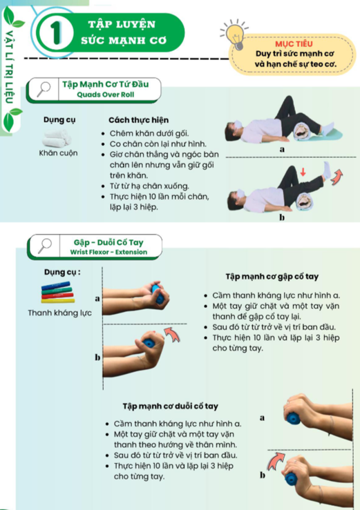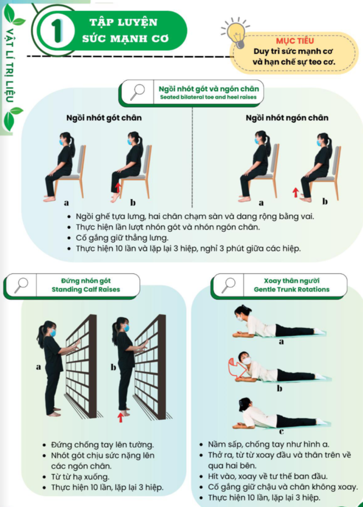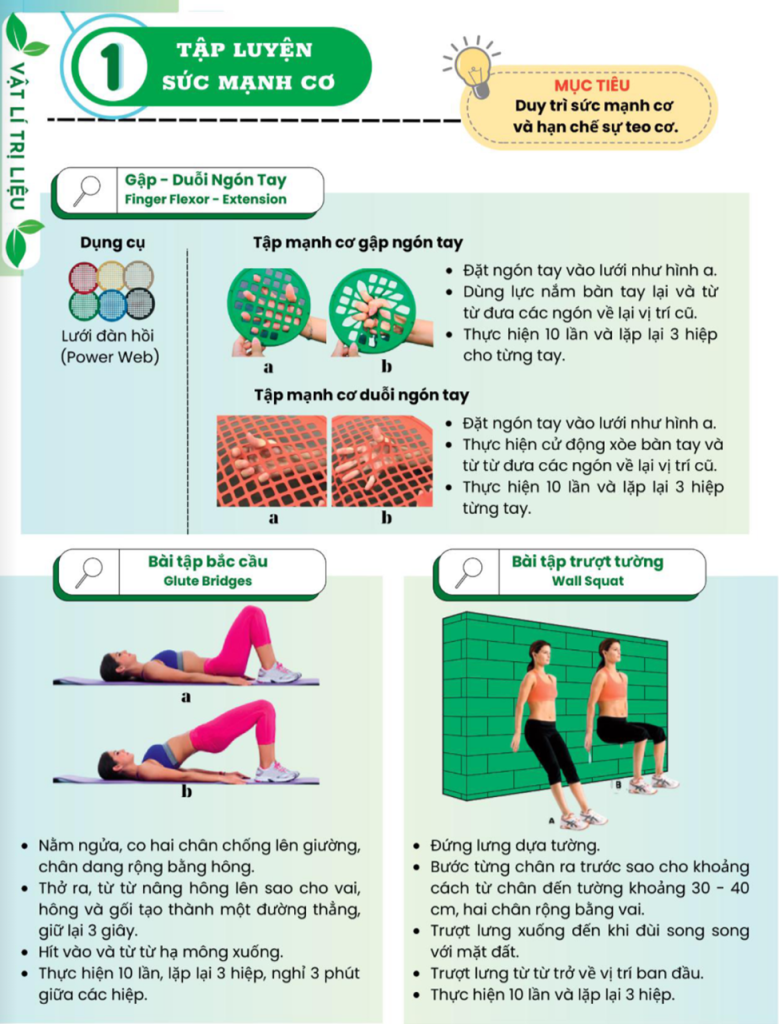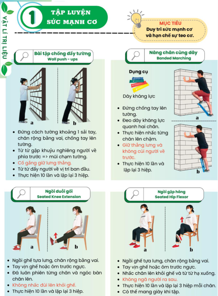 Về tập luyện sức mạnh cơ, chúng tôi giới thiệu các bài tập sau: