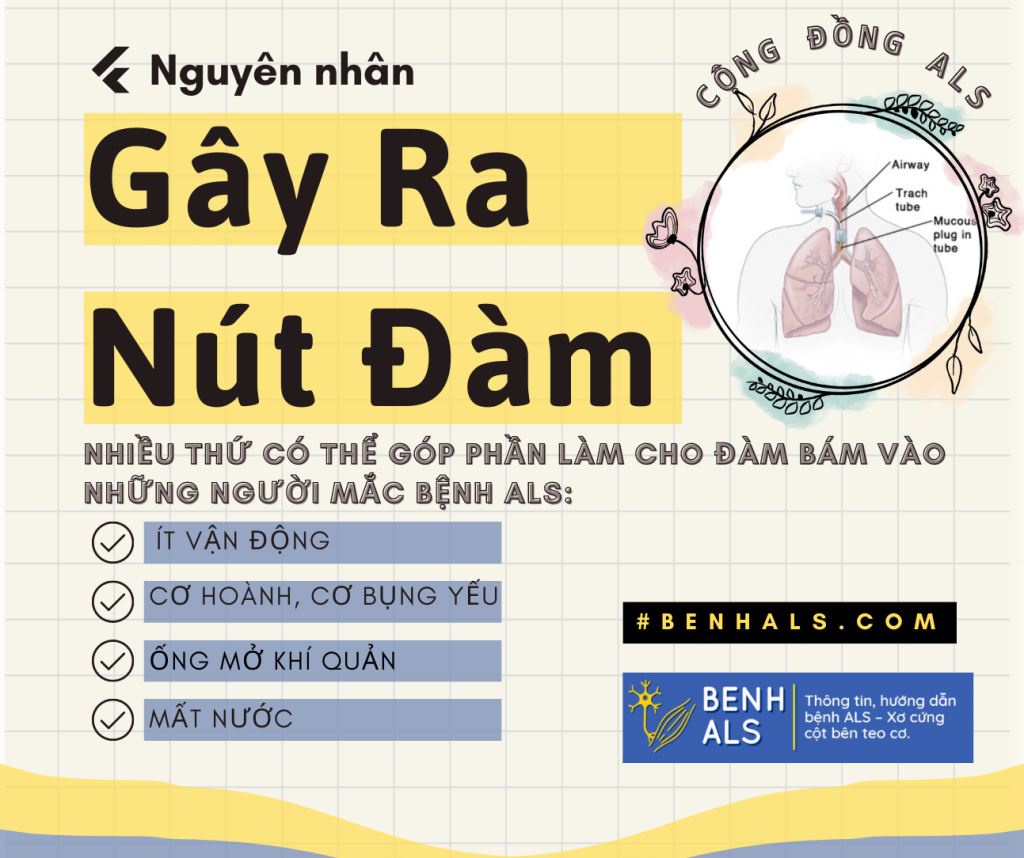 Nhiều thứ có thể góp phần làm cho đàm bám vào những người mắc bệnh ALS. Trong số đó: