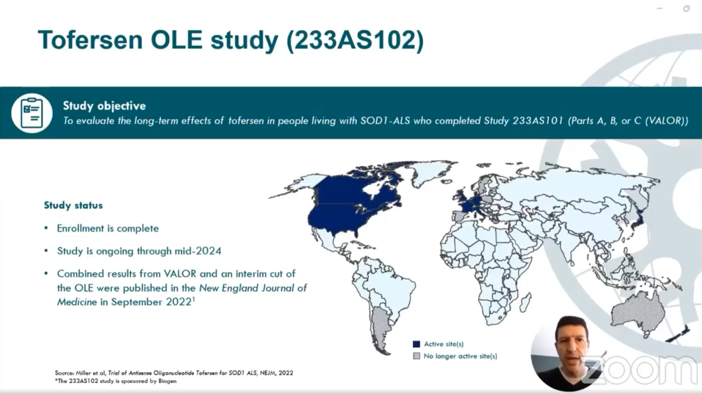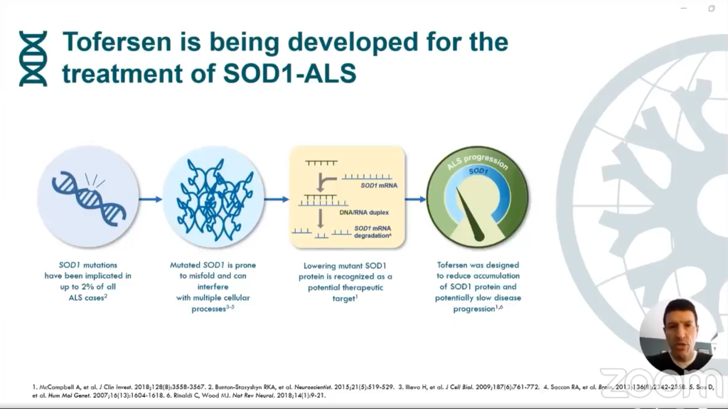 Tại sự kiện Cập nhật Thử nghiệm Lâm sàng Toàn cầu 2024, Bệnh xơ cứng cột bên teo cơ (ALS Việt Nam) xin được tóm tắt báo cáo của ông Steve Garafalo, Giám Đốc Y Khoa, Đơn Vị Phát Triển Thần kinh Cơ tại Công ty Biogen Inc về thuốc Tofersen mà công ty đang phát triển.