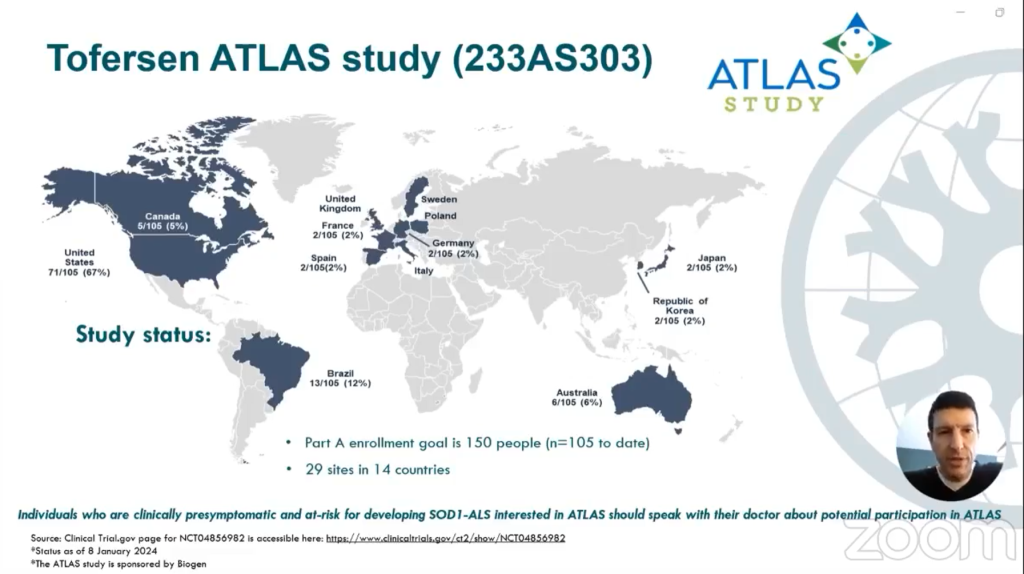 - Các cá nhân có người thân thuộc thể ALS đột biết SOD1, có nguy cơ phát triển SOD1-ALS và có quan tâm đến thử nghiệm ATLAS nên thảo luận với bác sĩ về khả năng tham gia thử nghiệm này.